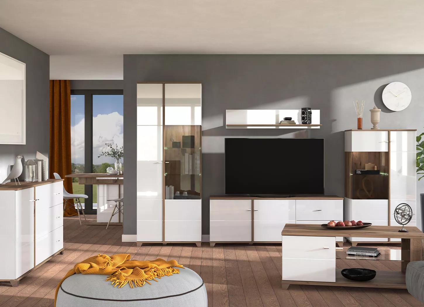 Odličan je izbor ukoliko vaš prostor želite da osvežite sjajnom belom površinom koja će ga otvoriti, dok će se takođe odlično uklopiti uz ostatak nameštaja u drvo dekoru.