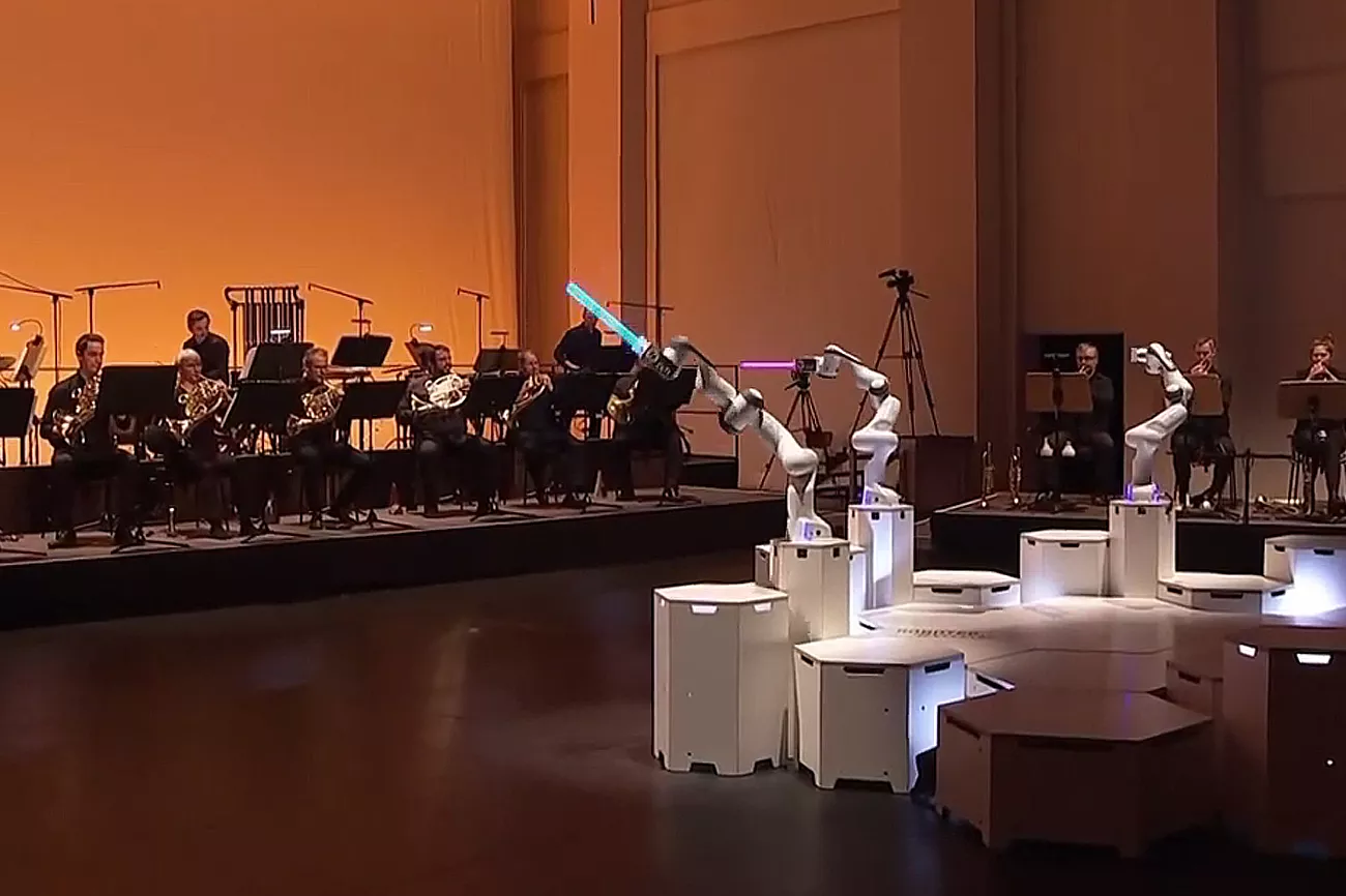 Muzičari Drezdenskog simfonijskog orkestra nastupili su pod dirigentskom palicom robota, koji je dirigovao uz pomoć tri zglobna kraka dizajnirana u saradnji sa lokalnim tehničkim univerzitetom.