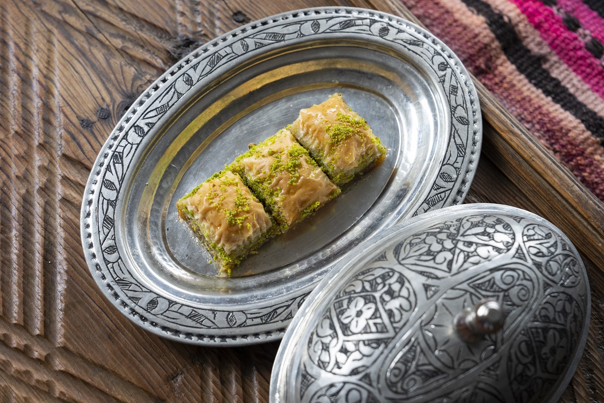 Tradicionalno pripremljena od 40 slojeva tankih kora (jufki), punjenih pistaćima ili orasima i zaslađenih sirupom, baklava je suština raskoši. Neodoljivo hrskava i sočna, vekovima osvaja nepca sladokusaca. Još od osmanskog perioda, ovaj tradicionalni turski desert čuva se i prenosi kao deo bogate, održive turske kulinarske kulture.