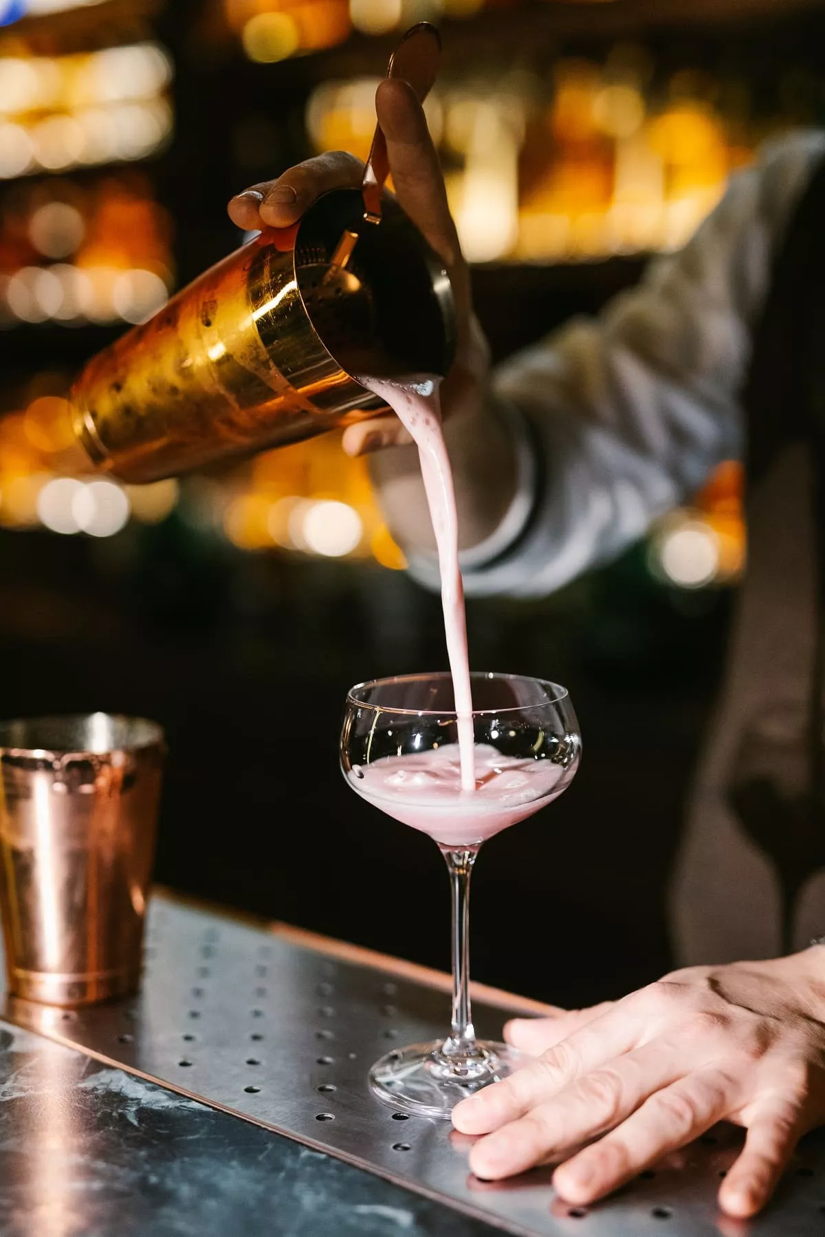 Dok šejkuje džin, sirup od alibaba cvetnog čaja i sok citrusa, u ovu mešavinu dodaje belance, koje zatim izmiksa stvarajući debeli sloj bele kreme na vrhu crvenog napitka. Kao da već taj prizor ne deluje dovoljno primamljivo, na vrh dodaje sušeno bilje, nekoliko kapi amareta iz male bočice, nalik onih filmskih za otrov, a završava sa sušenim ružinim cvetom.