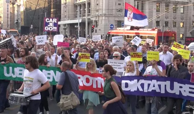 Šetnja učesnika protesta protekla je bez incidenata, a išli su od Trga Republike, pored Skupštine Srbije, Radiotelevizije Srbije, Politike, pa ponovo do Trga.