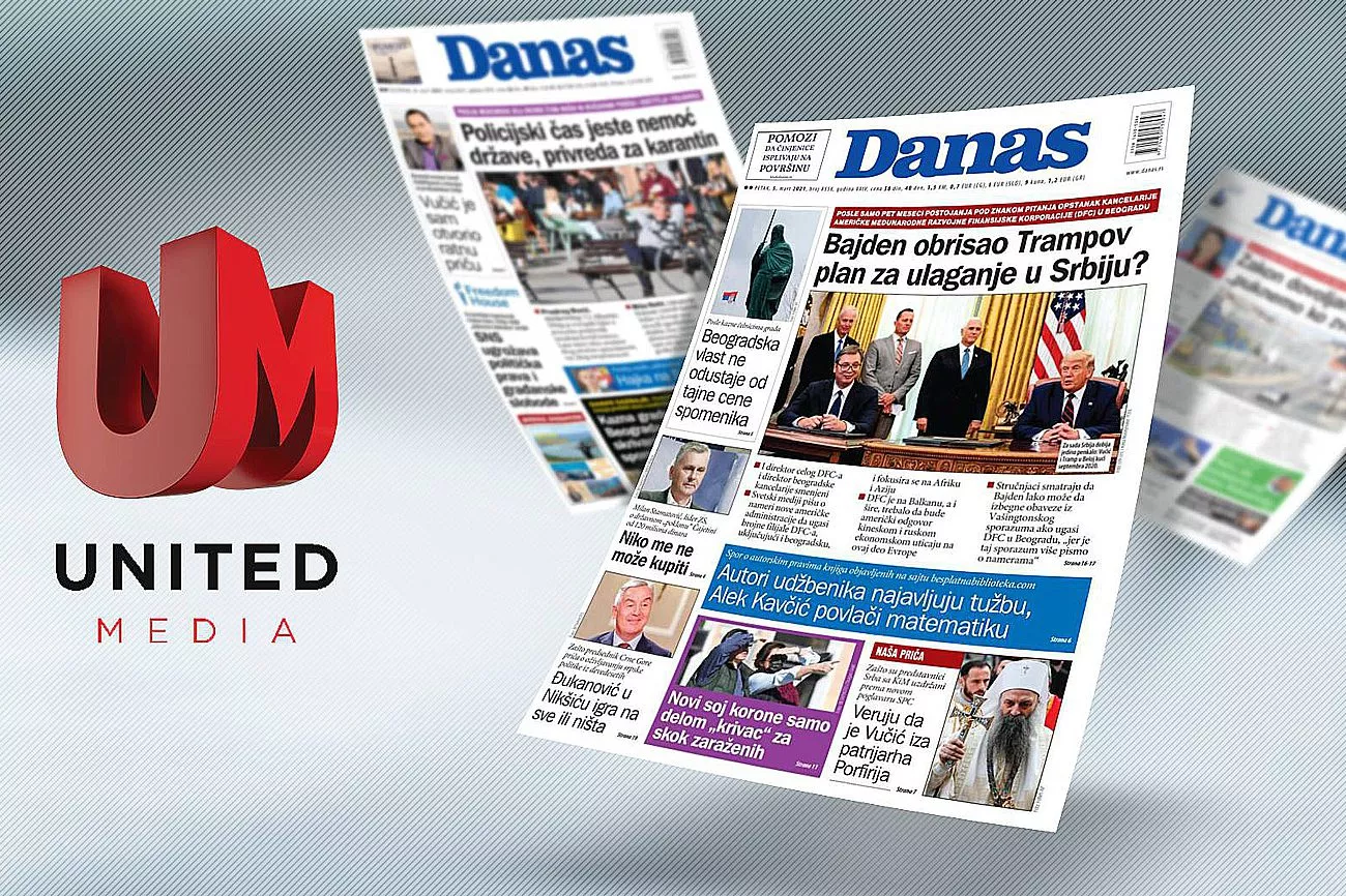 „Nakon odobrenja nadležnih regulatornih tela, kompaniji je odobreno preuzimanje Danasa, dnevnih novina koje izlaze od 1997. godine. To je prvo štampano izdanje iz Srbije koje će se naći u portfoliu kompanije Junajted medija, u okviru koje posluje 45 televizija od čega pet sa nacionalnom frekvencijom, 15 portala, kao i magazini i radio stanice“, navela je kompanija u saopštenju.