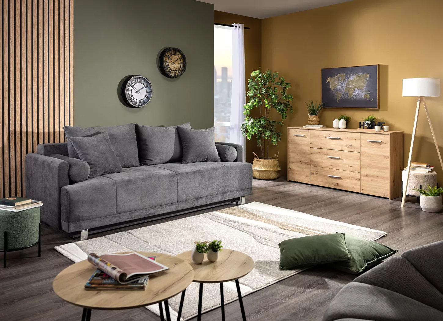 Još jedan nezaobilazan komad nameštaja u dnevnom boravku je komoda. Na prvi pogled jednostavna, ona predstavlja funkcionalan element koji može služiti za odlaganje različitih sitnica – dokumenata, knjiga, multimedijske opreme. Na komodu se mogu postaviti lampe, ramovi sa fotografijama, biljke ili ukrasni detalji koju prostoru daju lični pečat. Zahvaljujući različitim dimenzijama i stilovima, lako se uklapaju u svaki enterijer, od modernog do klasičnog.