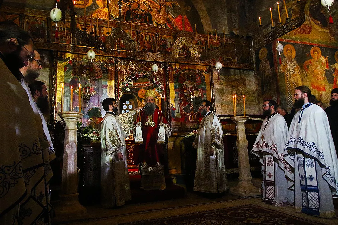 Na liturgiji u manastiru Pećka Patrijaršija, uprkos lošem vremenu, prisustvovao je veliki broj vernika.