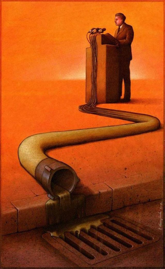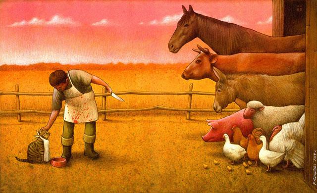 Ovo su slike koje ne služe da nas zabave ili nasmeju već da nas nateraju da zamislimo nad našim licemernim društvom. Šta je društvo? Kuda ide? Pavel Kačinski (Paweł Kuczyński), poznati crtač stripova iz Poljske, otvara ova i mnoga druga važna pitanja u svom radu.
