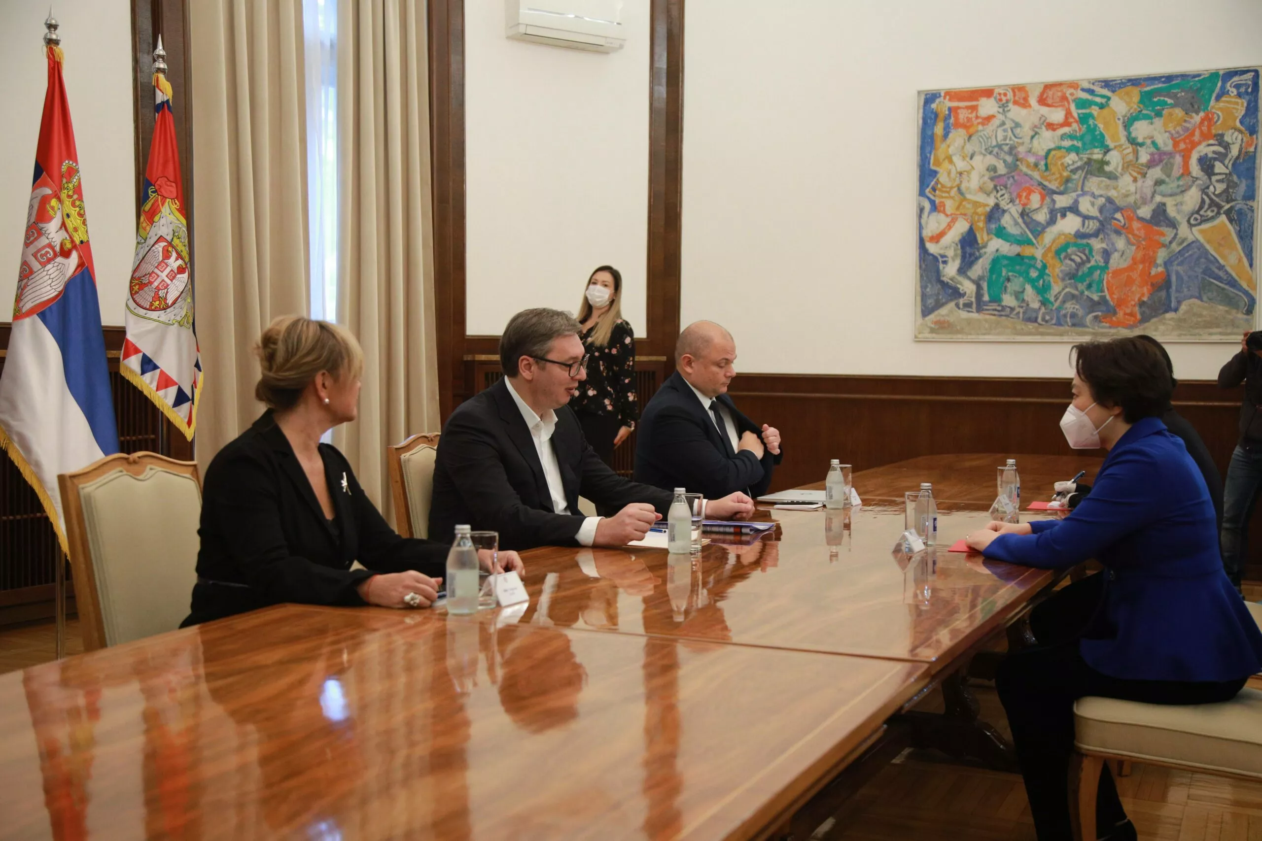 Jučerašnji sastanci koje je predsednik Srbije Aleksandar Vučić trebalo da održi sa ambasadorima Kine Čen Bo i Ruske Federacije Aleksandrom Bocan-Harčenkom održani su danas uprkos informaciji da je predsednika, kako je rekla premijerka Ana Brnabić, „uhvatio neki grip“.