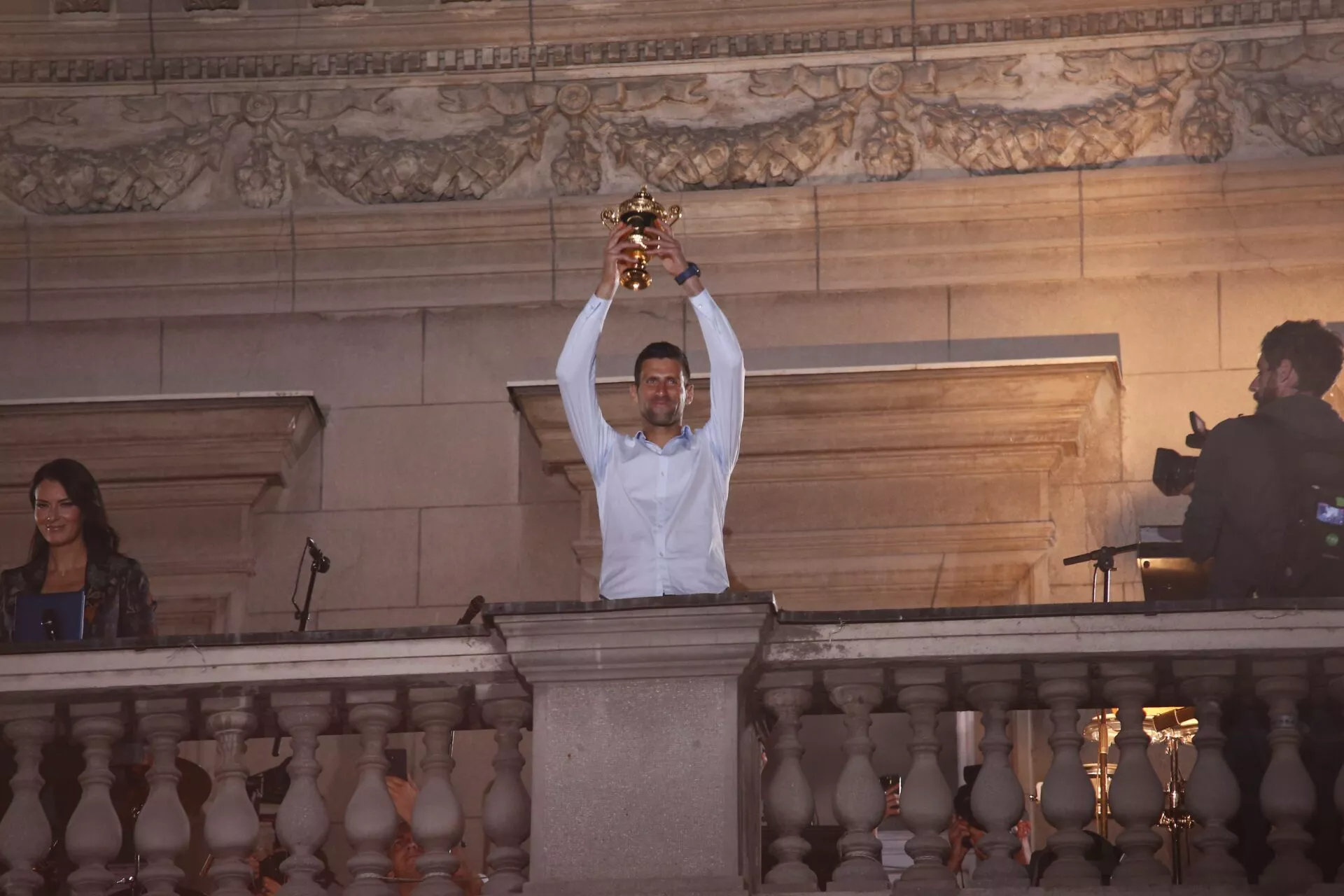 „Ovo su najlepši trenuci u mom životu. Blagosloven sam da mogu posle velikih uspeha da se vratim i proslavim sa mojim narodom“, izjavio je Đoković na balkonu gradske skupštine.