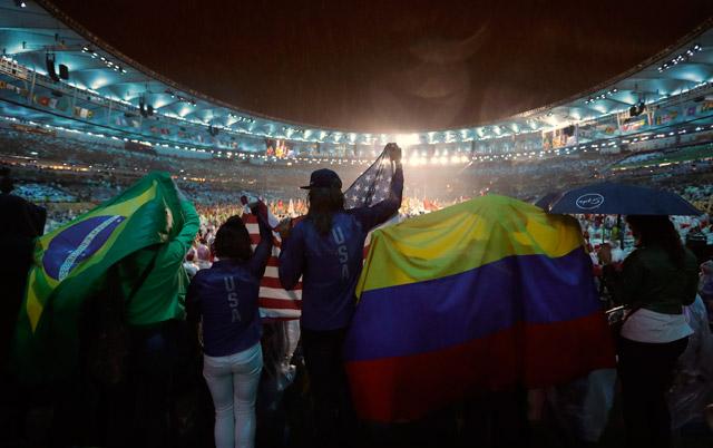 Pre početka ceremonije sa krova stadiona Marakana ispaljen je vatromet u čast pronalazača Alberta Santoša Dumoa. Ceremonija je počela emitovanjem originalnog snimka Alberta Santoša Dumoa, koga Brazilci nazivaju „ocem avijacije“.