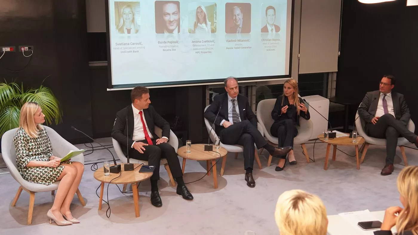 Na panelu koji je bio deo konferencije, gosti su imali prilike da iz različitih sektora privrede odgovore na pitanja i podele svoja iskustva na temu izazova i mogućnosti za zeleno finansiranje u Srbiji. Učesnici panela bili su: Jovana Cvetković, Development, TO and Innovations Director, MPC Properties, Đorđe Popović, Managing Director, Resalta doo, Vladimir Milanović, Direktor, Masdar Taaleri Generation i Christian Beynio, Rukovodilac specijalizovanog kreditiranja CE&EE, UniCredit.