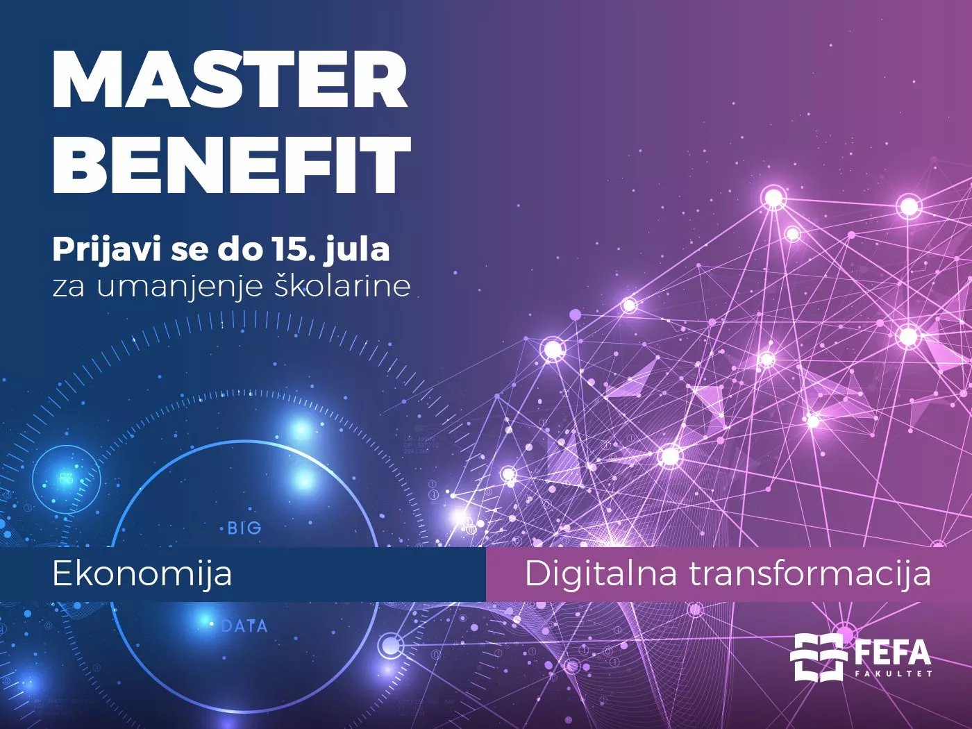 Povodom upisa nove generacije studenata na master studije ekonomije i master studije digitalne transformacije, FEFA fakultet je omogućio umanjenje školarine u iznosu od 10 % za sve one koji popune ovu prijavu do 15. jula.