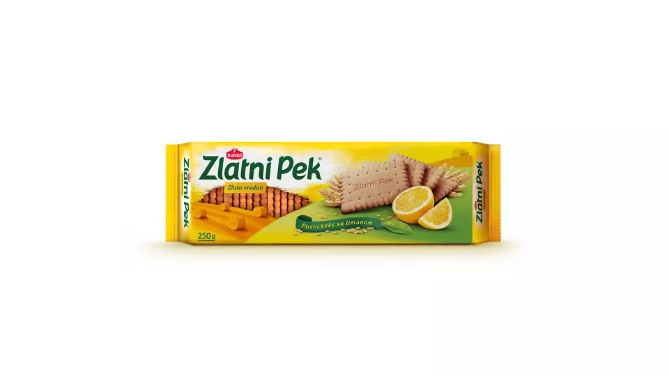 Zlatni Pek je zlata vredan keks za Vašu porodicu tokom cele godine, koji je dobio novog clana idealanog za letnje dane. Uz osvežavajući ukus limuna mozete da se zasladite i osvežite, a možda i da razmislite o novom receptu za kolač.